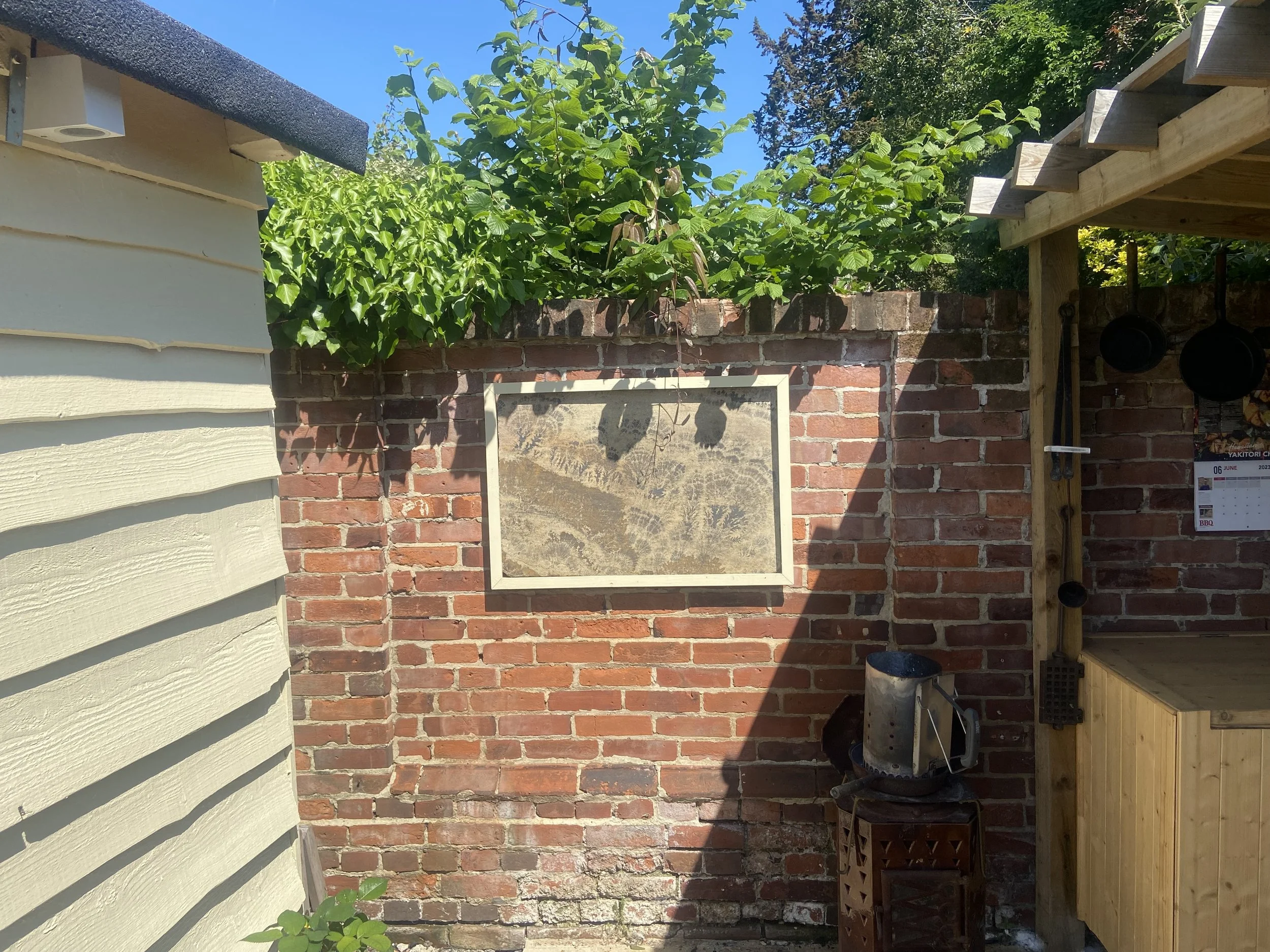 One unusual, we like to think original, idea was one of our indian sanstone paving slabs had fossilised ferns in it, so we thought why not display it as a picture.