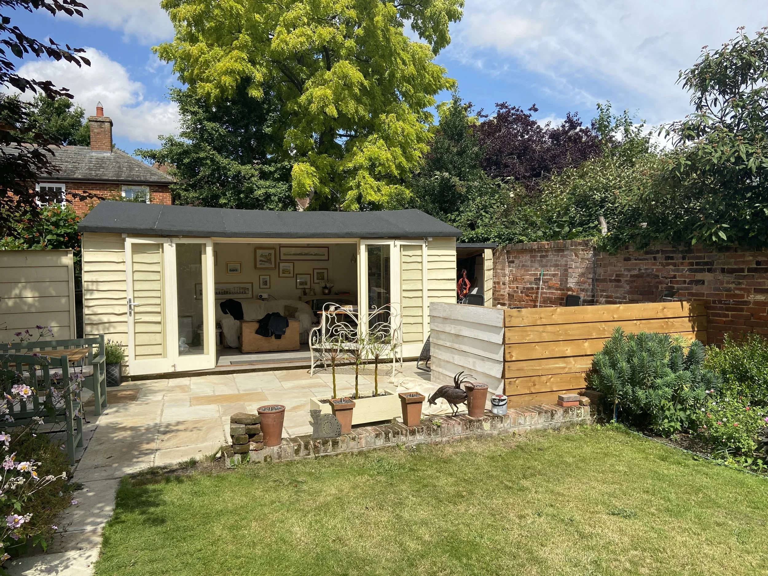 When we first took on Milliners, a 15th Century former long hall in Sudbury, Suffolk we knew the house was a project. Unloved and with very little improvement for probably15 years, we had to have a go and put our mark on it. The garden, though, won us over but was also a project, more of that in later stories. The summerhouse was also somewhat of a project but we could see opportunity there for future use, indeed its used more than the house and we thought would provide a useful base for us to be when the larger renovation projects in the house take place.