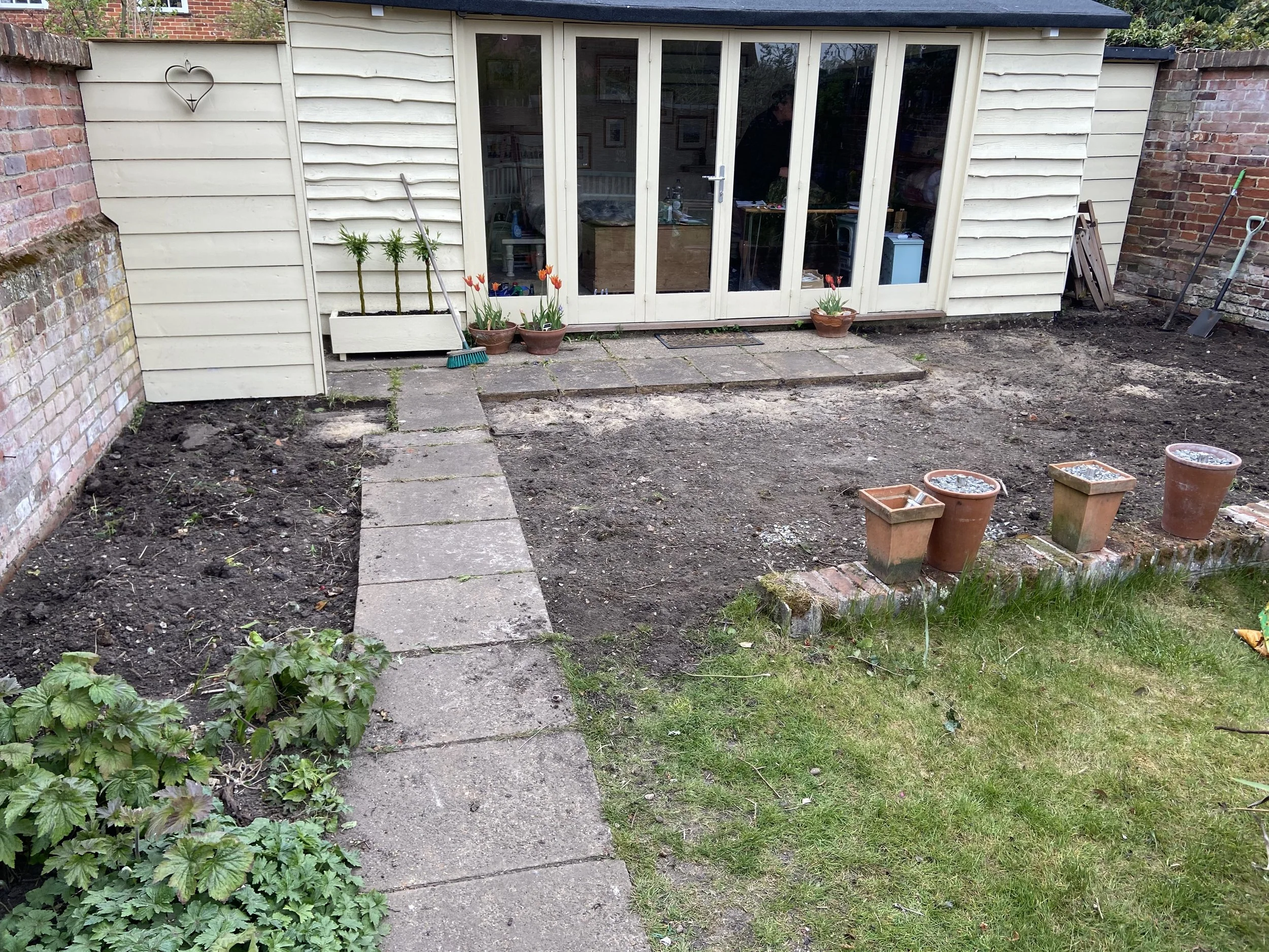 To save some money I’d agreed that I would lift the slabs and put them in safe palce for collectiing. Popping them on Freecyle they were collected wihtin a couple of days. A local Man was relaying his drive and loved the old concete slabs. Some of the larger ones weighed in at over 75 kilos!